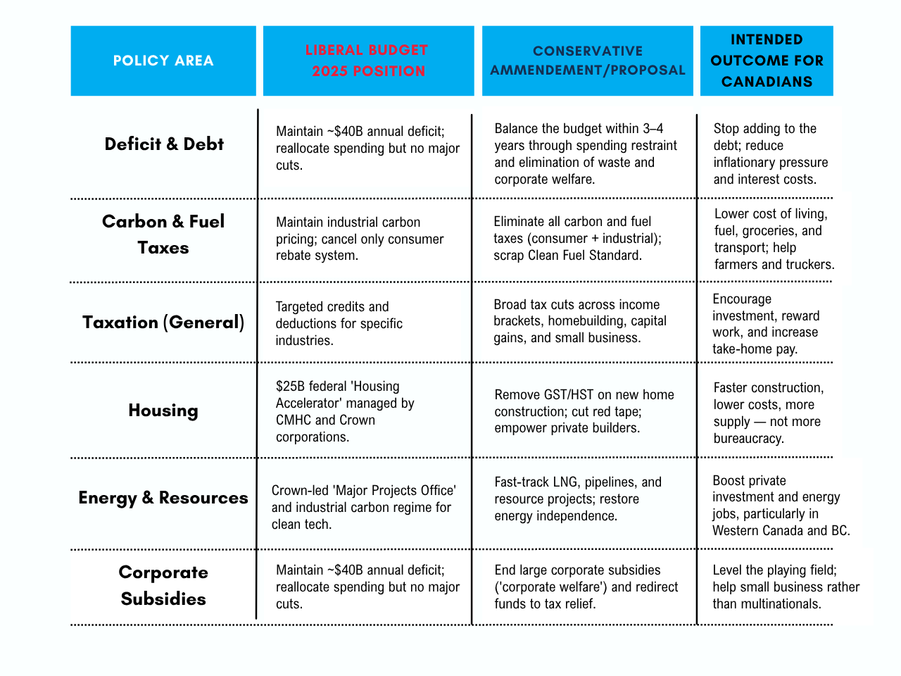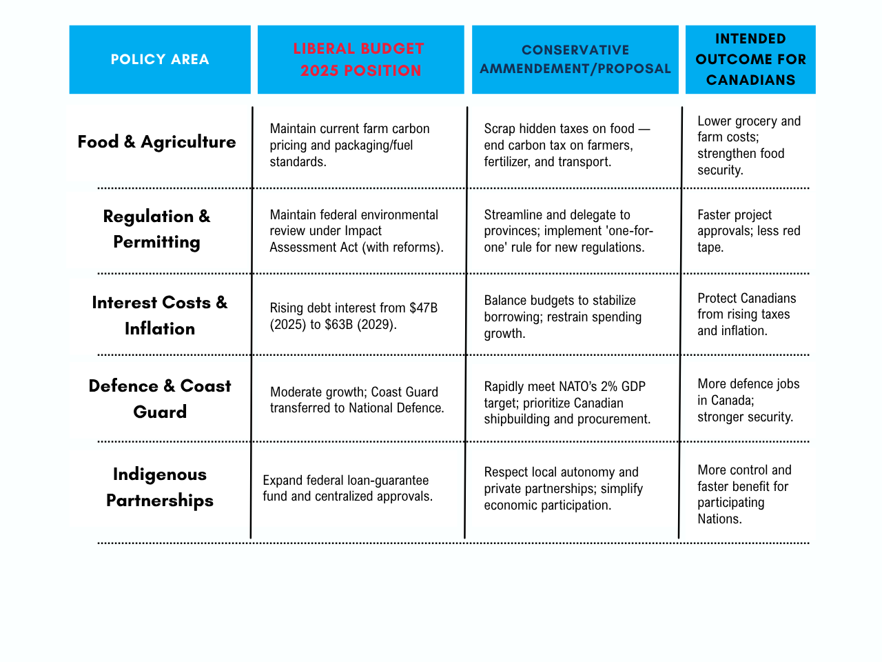 The Liberal budget borrows and spends; the Conservative amendments (shown below) would unleash private investment and create local jobs. Islanders would see lower costs, simpler housing approvals, and stronger regional industries — not Ottawa-run programs. The Conservative approach means less bureaucracy and more opportunity for families, small businesses, and communities.